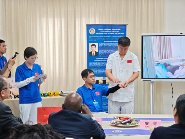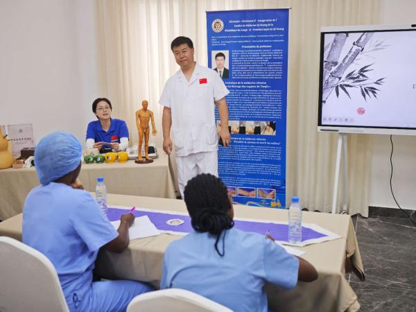 TheInstitute launched the "First Lesson in Qi-Huang"programin the early stage of its operation.In the lessons, members of the medical aid team adopted a model of "theoretical teaching + practical demonstration"inteachingTCM technologies such as acupuncture and tuinatoCongolesemedicalstudents,integrating African traditional medicalpractices to optimize diagnosis and treatment, andsharingexperiences, learningfrom each other's strengths, and jointly carryingforward traditional medicineof both sides.This way of teachingpeoplehow to fishrather than only giving them fishhas deepened local doctors' trust in TCM culture.