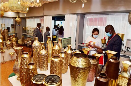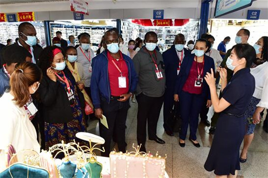 9月17日,23个非洲国家驻华使节和非盟驻华大使组成的非洲国家驻华使节团在义访问,参观了国际商贸城、进口商品孵化区。 吕斌 摄