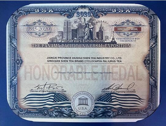 青钱神茶牌青钱柳茶获105 届巴拿巴万国博览会荣誉奖