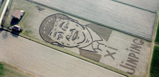 为了欢迎中国国家主席习近平的到来,一名名为甘布莱恩(Dario Gambarin)的意大利土地艺术家用他的拖拉机在意大利维罗纳附近卡斯塔尼亚罗附近的的一块田地里“画”了一幅巨大的主席肖像。肖像占地2万平方米,耗时8个小时完成。谈及创作初衷时,画家说希望中国领导人有机会飞过他的田地能看到它。