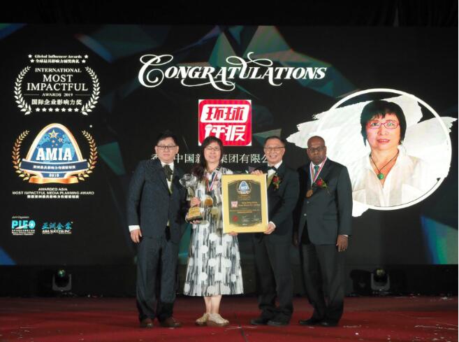 环球评报通讯社长刘夏(LIRONG)(左二)代表香港中国新闻集团环球评报通讯社领奖