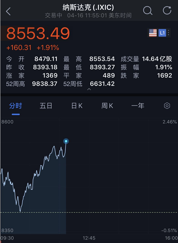 虽然基本面消息不大好,但美股今晚开盘之后,虽然短线跌了250点之后,又V型反转过来,下半夜怎么走基金君也不知道哦。(编者注:截至收盘,道指上涨33.33点,或0.14%,报23537.68点;纳指涨139.19点,或1.66%,报8532.36点;标普500指数涨16.19点,或0.58%,报2799.55点。)