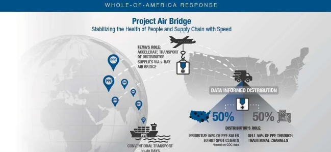 为了筹措医疗物资,库什纳牵头启动了一项名为“空中桥梁”(Project Airbridge)的计划,即通过FEMA来号召联邦、州、地方政府和私营企业之间合作,动用各自的关系网,从全世界统一采购物资。