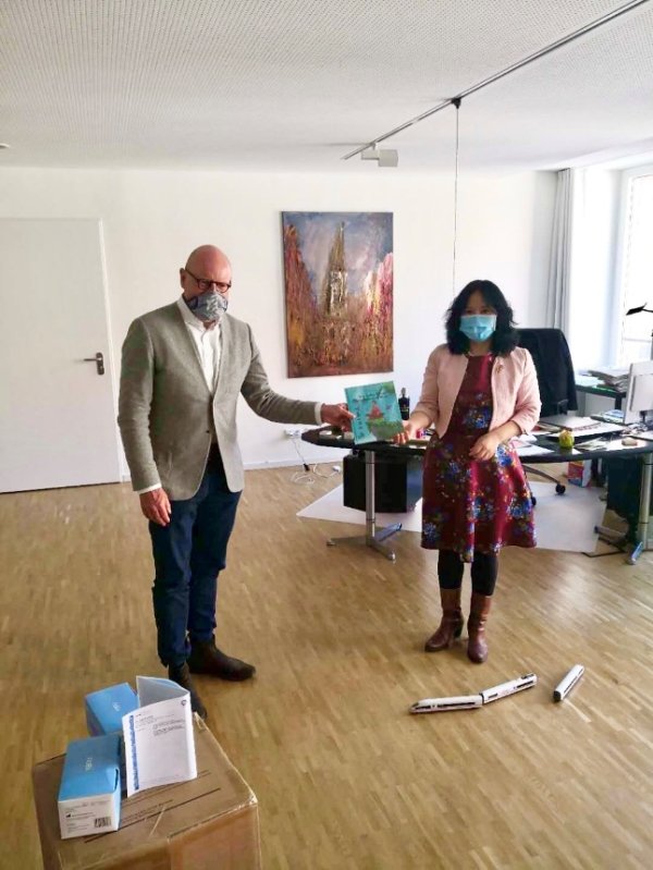 近日《威斯特法伦新闻》报道了明斯特第一市长马库斯·乐为接受德国湖北友好协会主席周俊博士的口罩捐赠,乐为市长对来自武汉的爱心表示诚挚谢意,并希望加强与武汉及中国的创新合作交流!捐赠活动结束后,乐为市长专门接受了同时担任明斯特地区记者协会副主席的周俊博士的专访。