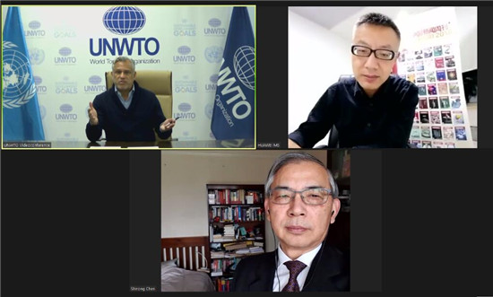 在英国富中传媒推动下,“媒体合作谅解备忘录”签约仪式以视频会议形式举行。中国新闻周刊英文版副总编郑忠海、英国富中传媒总编辑陈时荣、联合国世界旅游组织秘书长祖拉布·波罗利卡什维利出席了签字仪式。