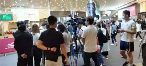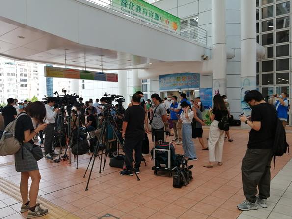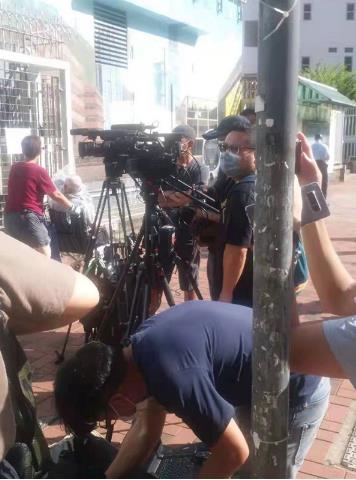 9月19日,在香港会展中心投票站,选民在投票后接受记者采访。香港大中华通讯社 摄。(现场照片)