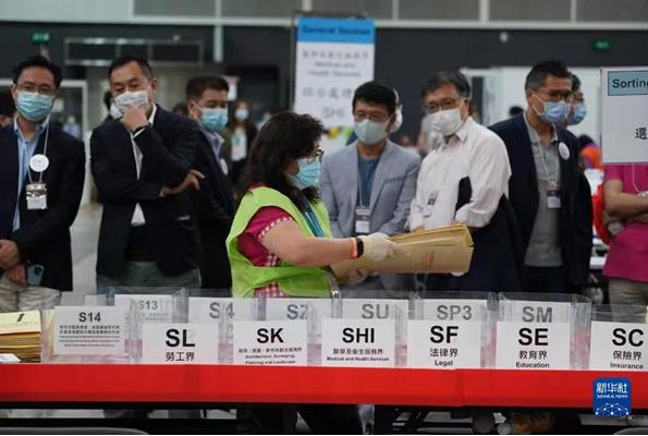 9月20日,香港湾仔会展中心,2021年香港特别行政区选举委员会界别分组一般选举点票结果经过一夜的紧张工作后,在清晨揭晓。
