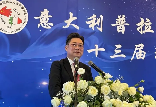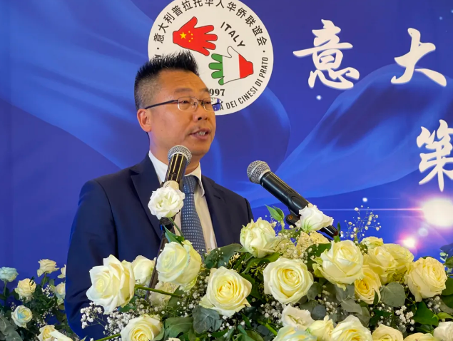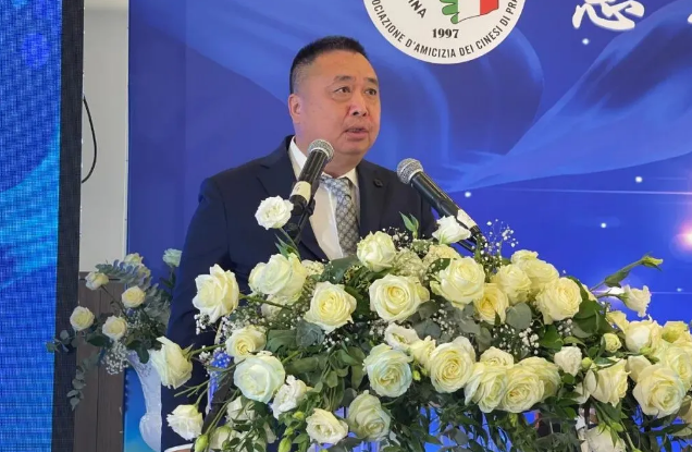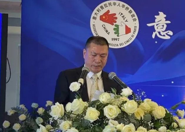 普拉托华商会周荣景会长代表普拉托侨界发言