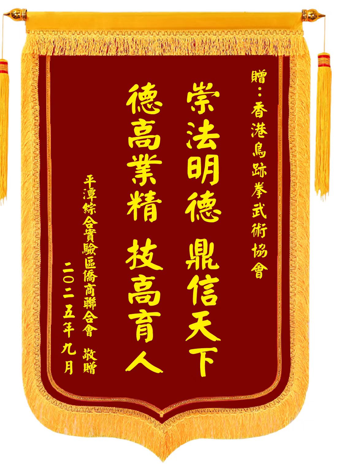 活动尾声,平潭综合实验区侨商联合会向香港鸟迹拳武术协会赠送了“崇法明德,鼎信天下,德高业精,技高育人”的锦旗,香港平潭九龙分会、香港平潭社团联会港岛分会、香港平潭社团联会妇女会、香港平潭社团联会新界分会也向香港鸟迹拳武术协会赠送了“恩师技术硬,徒儿满堂红”的锦旗。