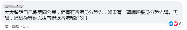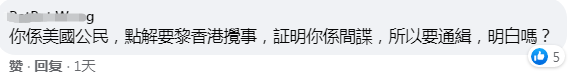 对于朱牧民这些言论,有香港网民讽刺,这是承认美国人搞乱香港的证据;还有人回怼,美国公民为什么要来香港搞事?不要再来香港!有人反问,说自己美国公民之前先说自己有没有香港身份证!还有人怒称,难道非中国公民就可以随便做伤害香港的事情而不需要负责任吗?↓
