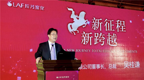 2017年全国经销商年会拉芳董事长吴桂谦在会上发表讲话介绍拉芳企业发展思路