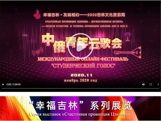 作为2020吉林文化旅游周的一项重要内容,中俄青年“云”歌会分别在吉林省和滨海边疆区进行歌手选拔,并将优秀作品录制成特别专题节目,共同表达了对美好生活的期待与祝福。长春市朝鲜族群众艺术馆、东北师范大学、长春大学、吉林广电合唱团等单位,精心排练并录制了《长白鼓情》《青春舞曲》《纺织姑娘》《友谊地久天长》等歌舞;俄罗斯文艺工作者也表演了《无价之宝》《万家平安》《玫瑰》等精彩节目。“云”歌会将通过广播、电视、网络平台在中俄两地广泛落地播出。