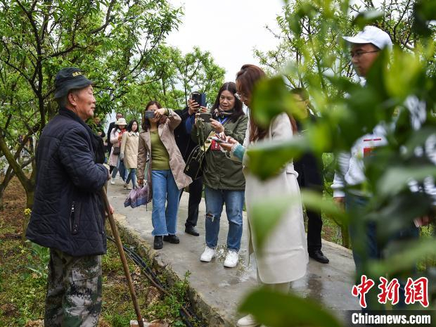 图为参访团了解重庆忠县柑橘产业发展情况。(图片来源:中新社记者何蓬磊摄)