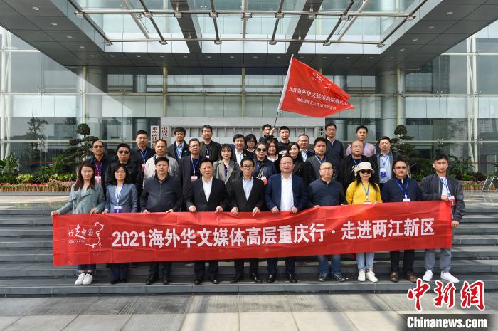 图为参访团在两江新区参访合影留念。(图片来源:中新社记者何蓬磊摄)