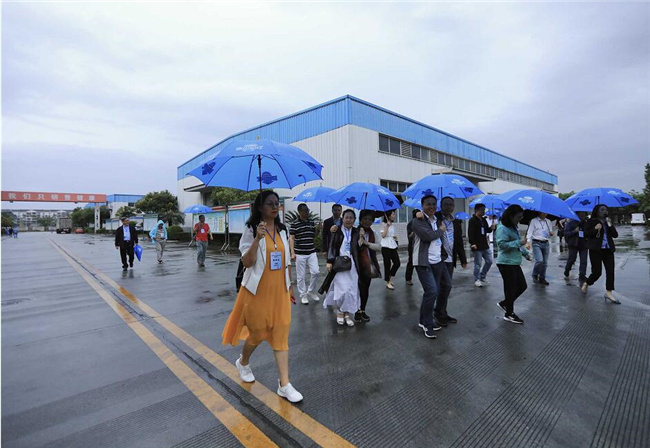 四川什邡,海外华文媒体代表参观四川蓝剑饮品集团。王磊 摄