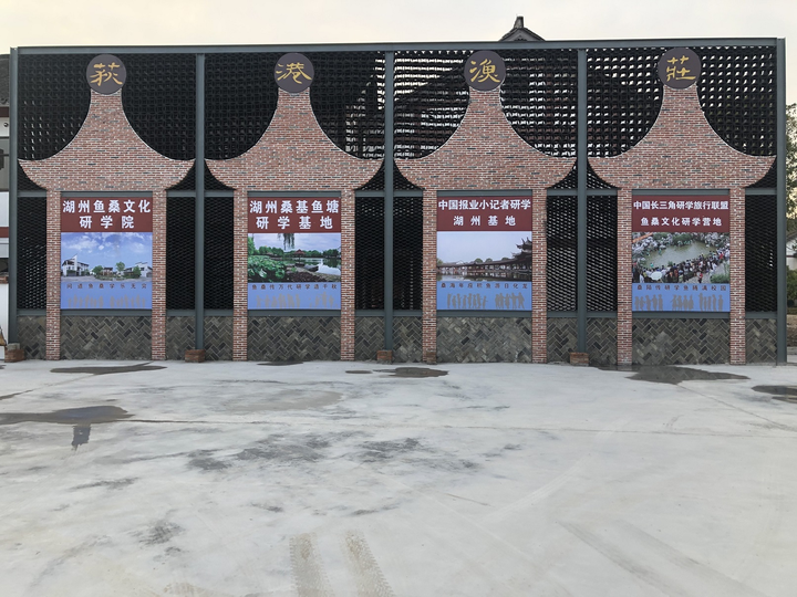 2019年1月,荻港渔庄桑基鱼塘研学基地成立,成为首批湖州市中小学生研学实践教育基地,也是以农耕文化为核心的首个鱼桑文化研学基地。2019年4月,正式成立国内首家以传统鱼桑文化为主的“湖州鱼桑文化研学院”,并聘请中国科学院地理科学与研究所研究员闵庆文先生为湖州鱼桑文化研学院总顾问。2019年6月,农业农村部国际合作司副司长马洪涛与湖州市委常委、宣传部部长范庆瑜在北京世园会“浙江湖州城市主题日”启动仪式上为湖州鱼桑文化研学院揭牌。2019年12月,湖州鱼桑文化研学院被认定为浙江省中小学生校外实践教育研学营地,实现了鱼桑文化研学基地与营地的健康发展。目前营地教师队伍共有12名研学导师,18名辅导老师,20名辅导员。在院长王似锋的带领下,结合江南太湖流域独具特色的桑基鱼塘系统的优势,围绕湖州桑基鱼塘历史人文和鱼桑农耕,开发了探鱼源、养鱼经、捕鱼乐、品鱼味、拓鱼砖、淘鱼玩、画鱼情、读鱼诗、传鱼说、拜鱼神等40项研学活动,推出了学敲渔家乐、捕鱼比赛、蚌壳画、陶泥制鱼、缫丝车、展馆研学、包粽子、蚕茧灯、碑拓体验、汉砖拓片、茧花手艺、湖笔制作等12大精品课程,涵盖了自然科学、人文历史、劳动教养等各学科内容。目前,正在探索运用网络平台进行鱼桑文化研学传播,开设传统鱼桑文化与现代科普相结合的研学课程,实施分年龄段的研学课程,积极倡导用一生情怀、哺万代鱼桑。