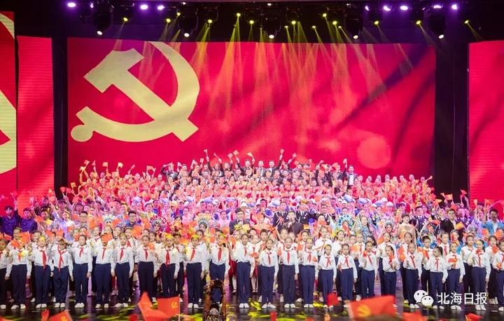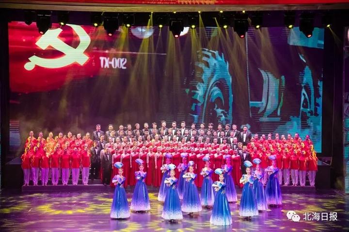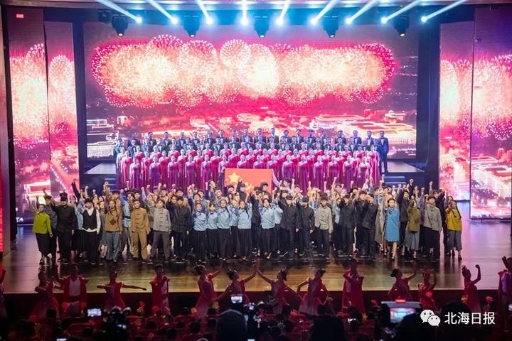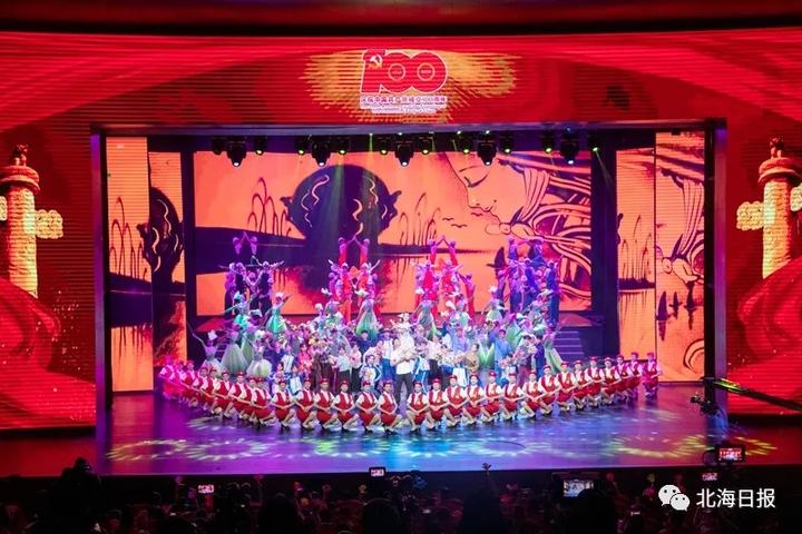 1926年6月,北海第一个党支部成立,江刺横任支部书记,党支部以“肖我照相馆”为秘密联络站,开展各项革命工作……当晚的文艺演出共分为“碧海丹心换新天”“艰苦奋斗建家园”“春风又绿珠城美”“向海扬帆新时代”四个篇章,情景交融的表演,徐徐展开了中国共产党在北海这片红色土地上的百年历史画卷。