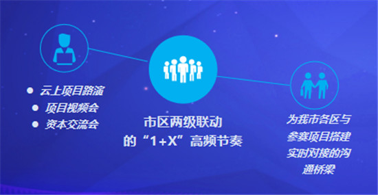 为了进一步切实发挥大赛资源和信息交流平台作用,大赛将以市区两级联动的“1+X”高频节奏,从4月起持续开展云上项目路演、项目视频会、资本交流会,为我市各区与参赛项目搭建实时对接的沟通桥梁。
