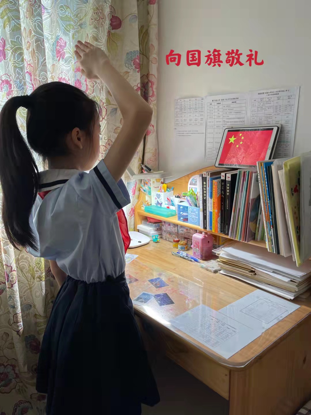 9月30日,是厦门实小五年1班的孩子们上网课的第16天,也是“烈士纪念日”。孩子们穿上礼服,佩戴红领巾向国旗敬礼,参与少先队在线签名、观看红色经典电影活动。在这一天的班队课上,班主任郑老师给孩子们讲述了伟大祖国72年的奋斗历程;分享了英雄的抗美援朝烈士照片;介绍了国家院士袁隆平、吴明珠、钟南山、钱伟长的故事;播放了七一勋章获得者张桂梅、陆元玖的视频;还与同学们讨论:我们就要追这些明星。有爱国志士、有奥运冠军、全运会和残奥会运动员、还有许许多多抗疫过程中的90后、00后,五1班的孩子们说:爱国主义不是抽象的,应该从自身做起,从点滴小事做起,提高自己的科学文化修养和思想道德修养。我们用爱国心仰望祖国,我们也用报国志守护厦门。祖国生日快乐!(郑辉)