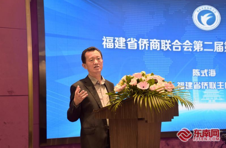 陈式海代表省侨联发表讲话。他对省侨商会自成立以来在助推地方经济发展、助力乡村振兴、支持公益事业等方面,尤其是积极协助中国侨联和福建省侨联举办中国侨商投资(福建)大会等活动所做的工作表示肯定和感谢。他表示,省侨商会坚持为会员服务的理念,特别是克服新冠肺炎疫情带来的不利影响,为海内外抗疫事业做出了重要贡献。他希望省侨商能进一步发挥独特优势和作用,在促进福建与世界联通,提升福建在海外知名度和影响力方面发挥更大作用,并且能够更紧密地围绕国家和地方发展的方向,在更深层次和更宽领域建功立业。