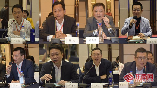 会议现场,翁小杰,侨商代表李荣生、林斌、郭玉明、方智高、丁少忠、傅晓东、苏庆灿、尤文辉等就省侨商会未来工作、侨企发展、产业投资机会、如何服务地方经济发展等分享经验,并积极建言献策。