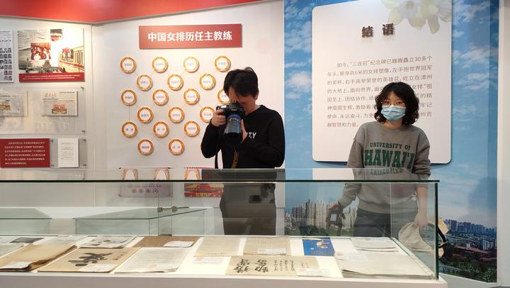 在讲解员的带领下,通过展馆内一张张历史照片、奖状、刊物及中国女排使用过的部分实物等大量历史资料,重温中国女排的拼搏历程和辉煌战绩,并从三连冠纪念碑、腾飞馆的落成等故事中,回顾女排与漳州的渊源,感受“娘家”人与女排血浓于水的真挚情感。每到一处,海外华文媒体人被中国女排辉煌卓著的历史、敢于拼搏的精神、永不言弃的意志、艰苦奋斗的事迹以及老一辈漳州人民无私奉献精神所吸引。