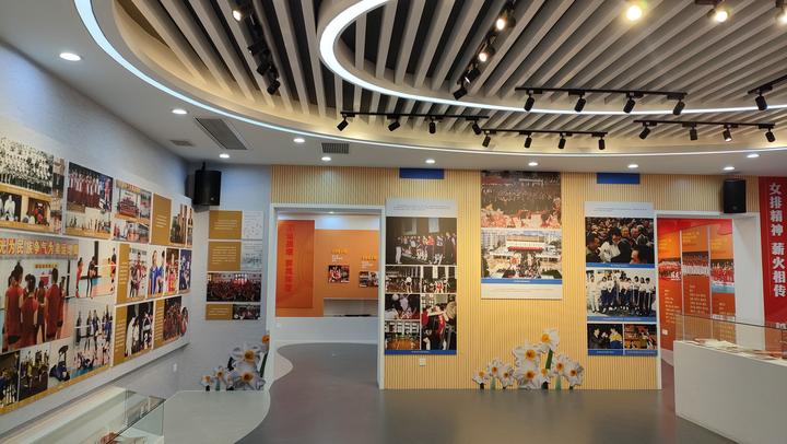 中国女排腾飞纪念馆由历史照片、中国女排姑娘刻苦训练时使用过的部分实物及各种荣誉奖章、奖状、奖杯仿制品,签名排球、题词、剪报、刊物、画册等大量珍贵翔实历史资料组成,配以声光电现代技术,突出展示了中国女排姑娘满怀爱国之心、夺冠之志,为振兴中华而卧薪尝胆、刻苦磨砺,以超常规的训练和科学求实的态度磨练刚强意志和精湛球艺,用汗水、泪水、血水凝塑勇往直前的英雄群体。真实反映“祖国至上、团结协作、顽强拼搏、永不言败”的中女排精神!