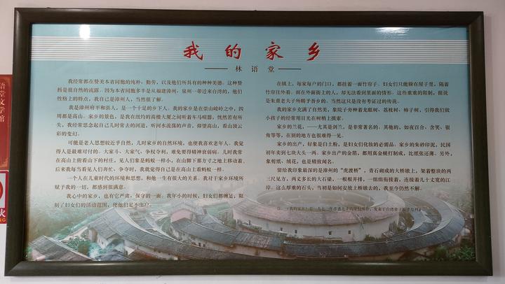 展厅里面主要陈列了四块,一是“山乡孩子和乐童年”,二是“文学大师文化巨匠”,三是“魂牵祖国、梦萦家乡”,四是“誉满环球、名垂青史”。展厅中展示的是林语堂不同时期的照片和不同时期的著作目录。