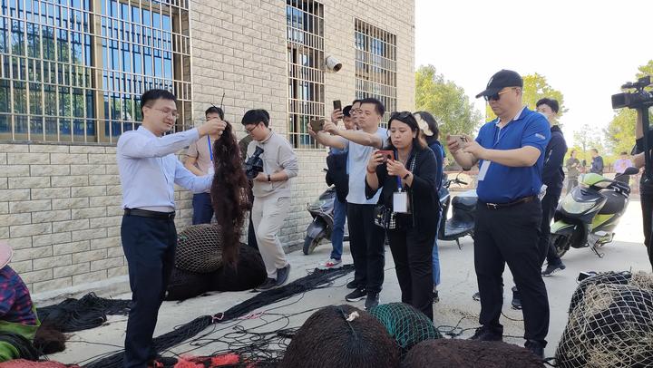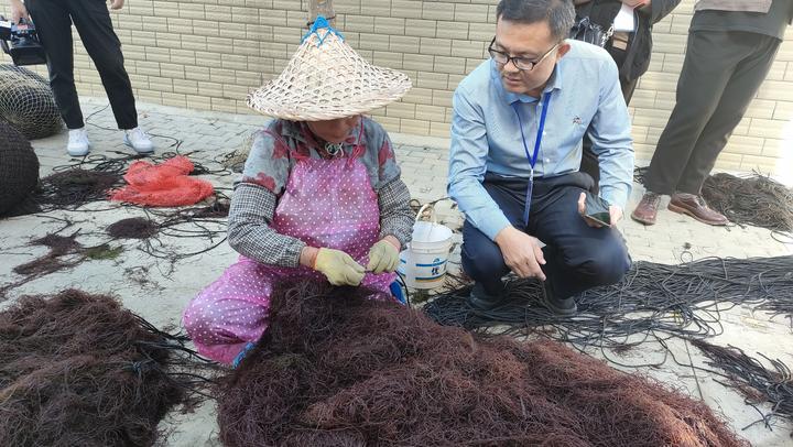 梁志埠书记向海外华媒人介绍“鲍鱼菜”加工