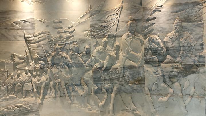“大军进漳”展厅主要展示了陈政父子出兵闽南的史料及陈政墓出土的文物,主要有《云霄厅志》陈政传略、明正德《大明漳州府志·陈元光传》、陈元光家族世系表及《颍川陈氏开漳族谱》、唐宋纪年砖瓦等,还展示了复原的闽南古民居门面场景、陈氏原籍地河南光州固始县浮光山图、河南固始陈氏将军祠、固始龙湖状貌以及陈政父子率部自中原南下征闽路线图、陈政父子进军漳州军事形势图、陈元光磨剑石遗迹图、云霄火田村陈政故居遗址图等珍贵史料。这些图片资料生动展现了陈政父子当年千里迢迢赶赴闽南平定“啸乱”的历史。