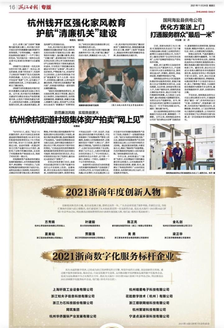 《浙江日报》刊登报道“2021浙商年度创新人物”