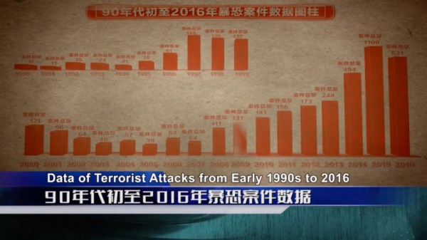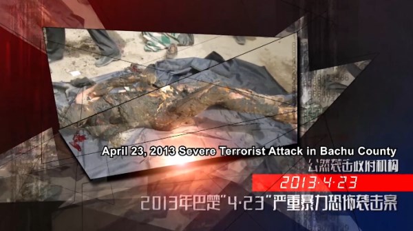 在新疆公布的中英文双语字幕视频中,披露了1990年阿克陶县巴仁乡“4·5”武装暴乱案的现场画面。