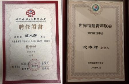 其二,在维护祖国利益和民族大义方面。沈木辉先生始终有着坚定的立场。作为俄罗斯中国和平统一促进会副会长,他一直在致力于推动台海两岸关系和平发展进程,坚决反对任何形式的台独、港独、疆独、藏独等分裂国家的不齿行径;同时,身为致公党福建省委会海外宣讲员,他还甘当祖国和家乡的“传声筒”,积极利用各种形式向在俄(闽籍)华侨华人宣传祖国当下的改革和建设成果,以增强在俄(闽籍)华侨华人的民族自豪感和自信心。另外,作为福建省政协海外特邀委员,沈木辉先生还经常受邀回国参加福建省政协的相关会议,为家乡的建设和发展也进献了不少好的意见或建议。