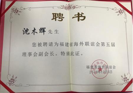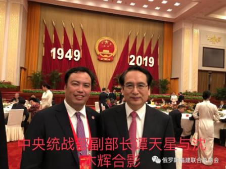 纵观沈木辉先生旅俄20余载的奋斗史,他勤奋创业、服务为侨、爱国爱乡,堪称华人之楷模。因此,这些年来,他也获得不少的社会殊荣和礼遇。其中,最使他难以忘怀的是2021年国庆期间,他作为致公党福建省委会海外宣讲员应邀回国参加了由全国政协办公厅、中共中央统战部、国务院侨办、国务院港澳办、国务院台办、中国侨联在人民大会堂联合举办庆祝中华人民共和国成立72周年国庆招待会。会议期间,他认真聆听了中共中央政治局常委、全国政协主席汪洋的致辞,令他倍感振奋。当时,他心中激起了无限的豪情,暗暗发誓今后一定要更加努力,为祖国的发展建设、为中华民族的伟大复兴而不懈奋斗。