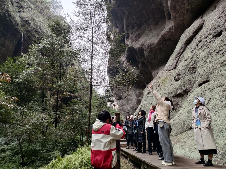 2月20日,参加2022海丝华文媒体发展论坛及海外华媒福建行活动的来自世界各地的四十多位海外华文媒体记者来到了被誉为“黄山归来不看山,寨下归来不看谷”的泰宁寨下大峡谷参访,大家深深被这大自然的鬼斧神工震撼和吸引。