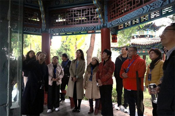 成员们认真聆听着岳飞的故事,从他的英勇抗金到被奸臣陷害,无不为之动容。当看到岳飞手迹的碑刻时,大家纷纷拿出手机拍照称赞。一位来自澳洲的媒体人表示,之前只知岳飞忠义事迹,此次才深入了解他的文采与字迹同样出色。