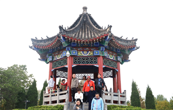 作为一块钟灵毓秀的文化沃土,安阳汤阴有着5000年文明史、3400多年文字史和2226年建县史。羑里城就坐落在汤阴县城北,也叫 “文王庙”。它不只是殷纣王囚禁周文王姬昌的历史遗址,更是《周易》的诞生地。走进景区,高大的文王塑像映入眼帘。当年,周文王正是在此推演八卦、著成《周易》,其蕴含的哲学思想影响深远。采访团成员漫步羑里城,先后参观了演易坊、主殿等景点。行至八卦阵区域,成员们登上瞭望台,俯瞰阵法布局,于纵横交错的路径间,感受古人智慧的奇妙。