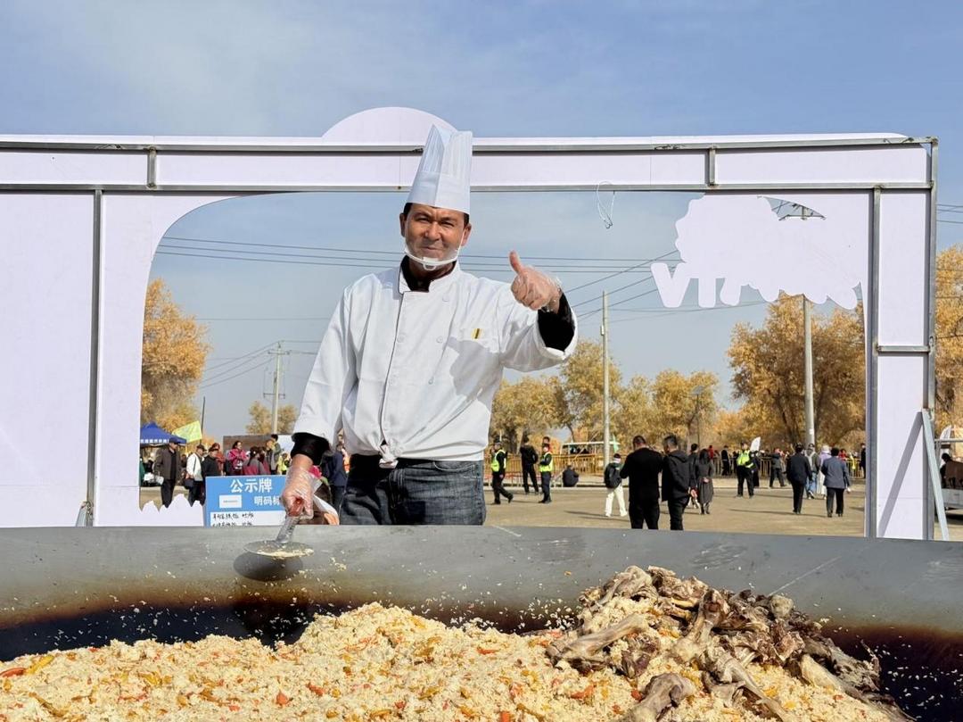 在美食区人头攒动,杠子头、面肺子、烤肉、抓饭等特色美食香气扑鼻,成为游客打卡的“必选项”。在抓饭摊位前,围满了群众,大家一边吃美食看美景,一边和同行的家人朋友分享。网络达人阿布杜塞米·努尔艾力说:“这次是我第二次来沙雅县,但是胡杨林我是第一次来,来了以后就是很激动,看见了这么多的美景,也吃了好多好吃的,尤其是那个海楼抓饭,这个抓饭一吃就能吃到特别美味的味道,很高兴,也很激动,作为新疆本土的网络达人,这次我来沙雅这个胡杨季,为自己的家乡做宣传,我自己也是特别开心。”