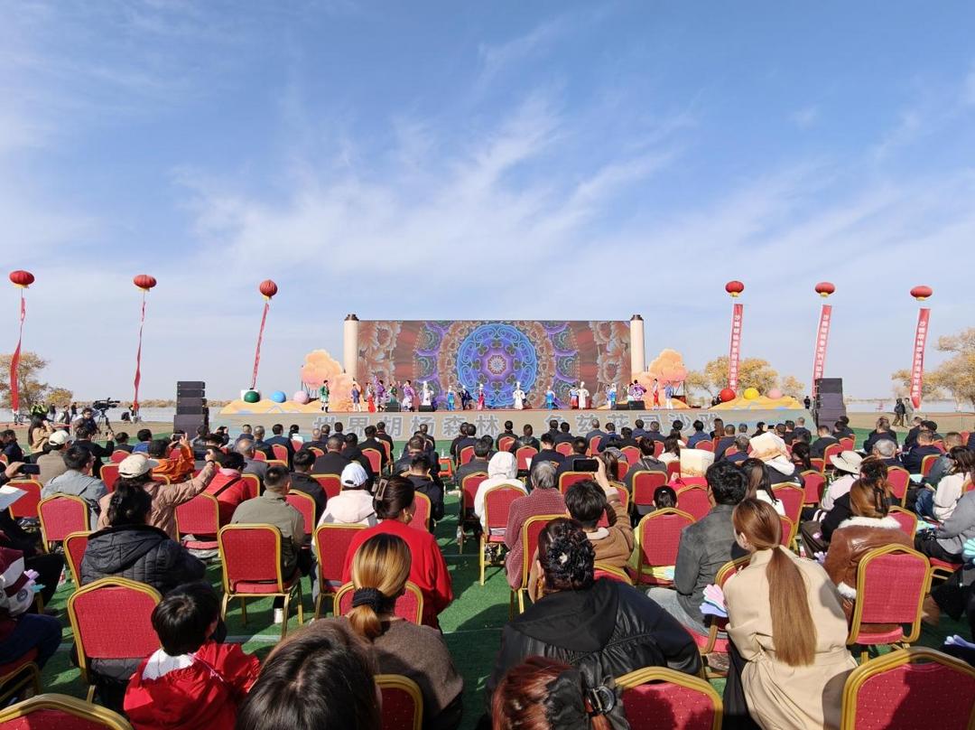 开幕式在展现沙雅瑰丽风光的宣传片中拉开帷幕。系列重磅文旅产品相继发布,沙雅县与携程平台联合推出的139胡杨秘境公路特色旅游线路正式上线,为自驾爱好者提供了探索沙雅绝美风光的新选择;“跟着歌曲去旅行”旅游线路以及本土电影《沙雅三部曲》的推介,则从音乐与影像的独特视角,为游客深度体验沙雅县文化魅力提供了全新指南。文艺演出精彩纷呈,《龟兹古韵》舞蹈让人梦回千年丝路,散发浓郁生活气息的《馕香沙雅》展现了本地的民俗风情,而震撼人心的舞蹈《胡杨》则演绎了生命的坚韧与壮美。来自浙江平湖的国家级非物质文化遗产代表性项目“九彩龙”表演者在胡杨林间飞腾起舞,展现了文化援疆的丰硕成果,成为开幕式上一道亮丽的风景。