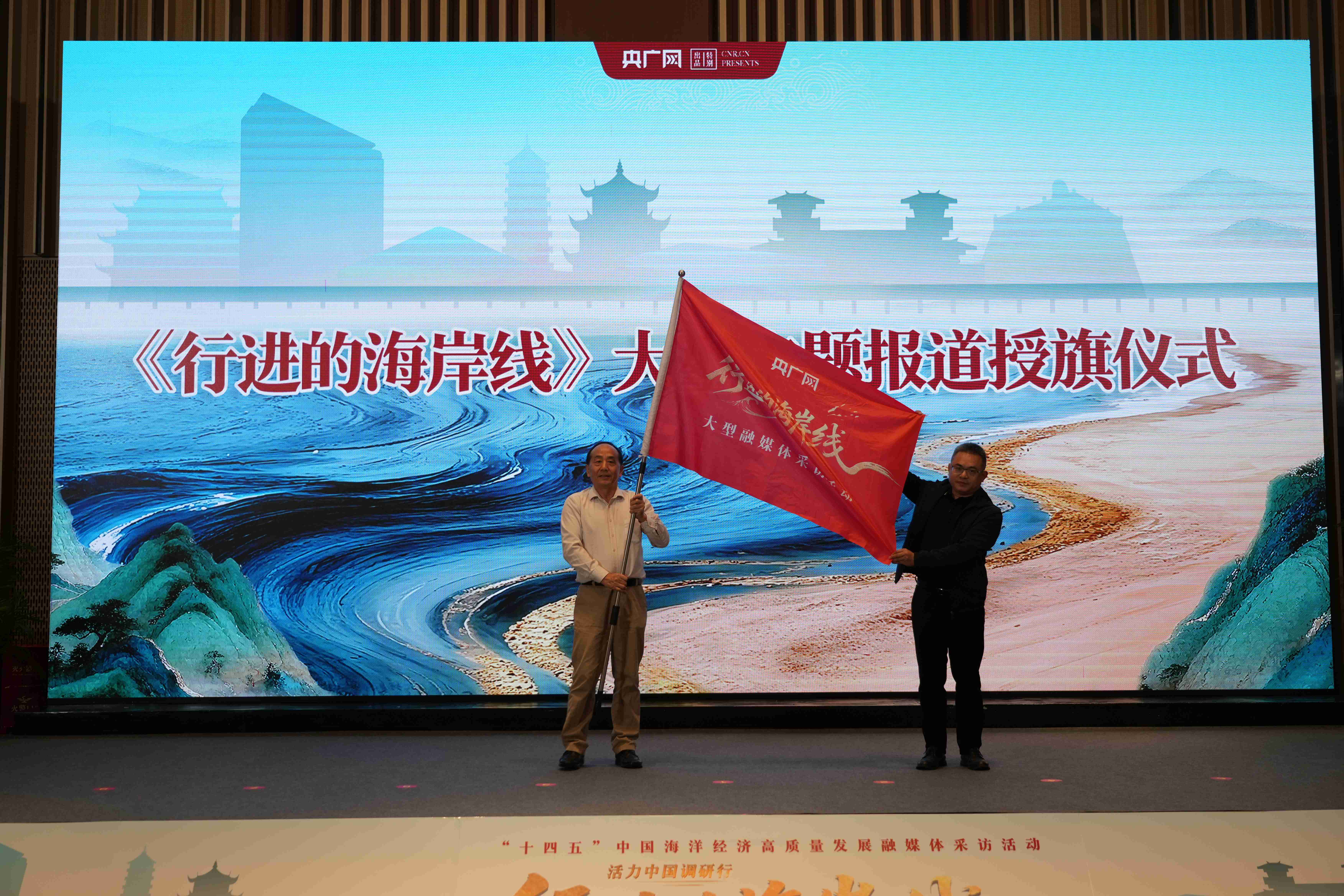 活动现场,与会嘉宾共同为《行进的海岸线》大型融媒体采访活动福建启动仪式按下启动键。央广网副总编辑伍刚为《行进的海岸线》福建采访团的记者代表授旗。启动仪式之后,央广网记者将奔赴一线,用镜头和笔勾勒“海上福建”的壮阔画卷。
