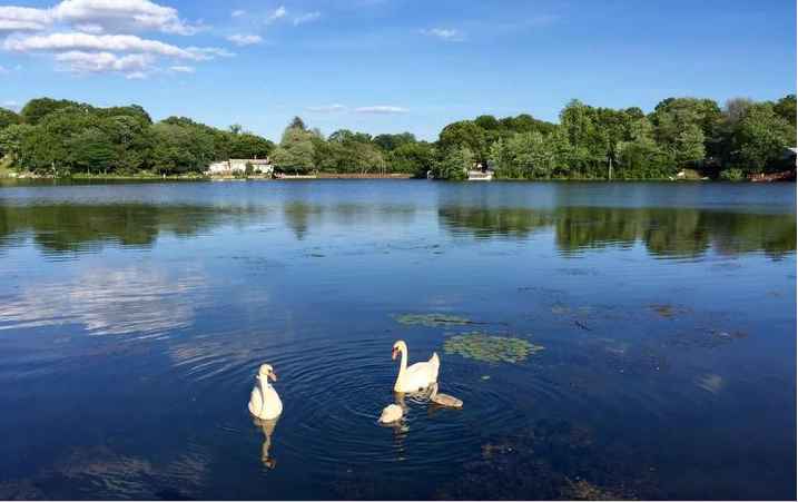 太阳刚刚升起,静谧的希思湖抹上了一层银光,湖面如镜。两只白天鹅慢慢游出来,依然从容,依然优雅,看不出有丝毫远行的模样。她们游到木台前,面对着我,舒展起翅膀,我也挥起手致意。白天鹅慢慢游到湖的中央。霎时,我眼前出现了惊心动魄的一幕,那是一幕何等辉煌的景象——两只白天鹅像勇士一样,奋力拍打着翅膀,带着一连串的水珠,离湖腾空而起,飞向悠远的蓝空。我目送着她们渐渐飞远,期盼她们不久再归。(作者:冰 凌)