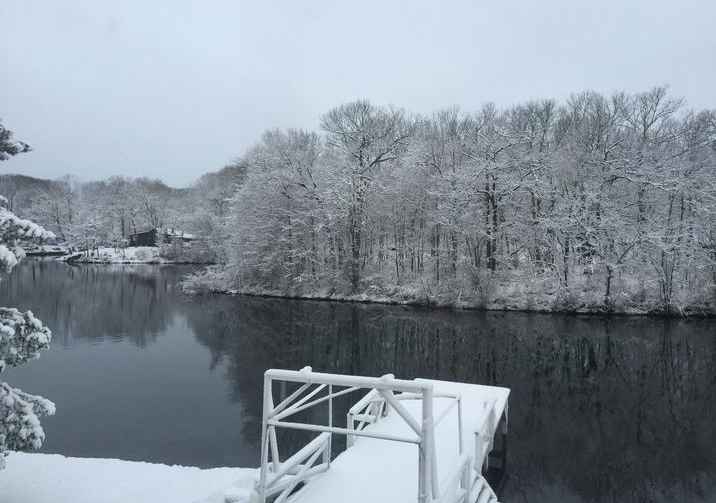 这湖叫希思湖,像纽英格伦千万个湖一样,躺在长岛海滨的丛林里,朴素得像一个穿着粗布的村姑。只有在阳光下,湖水沉静地涌动着,你才能感觉到她潜在的气质,高贵如同皇族。我几乎天天面对她,只要从电脑上抬望眼,就可以透过面前的七扇窗户,望见长长的希思湖,就像望见一整幅山水宽影幕一样。湖水是清淡的褐色,只有太阳出来了,湖水才显出华丽的淡蓝;如果是逢春入秋,丛林透绿,湖水便浸染成一湾碧玉。打开后门,走到木台上看湖,湖水清澈见底,大小鱼儿趴在水底,一动不动,或许是懒得动,或许在伺机等待可以入口的生物。水草在湖底飘逸,像在呢喃着万般柔情。这里已经跨过新年了,却遇到百年不见的暖冬,至今都不见下一场轰轰烈烈的白雪。但树叶照旧飘零,时常可以听到枯枝断裂声。唯有塔松还流露着枯绿,守着自己的坚贞。几只松鼠在粗大的树干上爬上爬下,那副欢快的模样,就像在拨动着塔松的心弦。但真正让希思湖生动起来,是湖上那些生灵。大约有几百只野鸭,常驻在希思湖上,鸭群在湖中游来游往,或者在湖面上飞来飞去,或者在岸边寻食嬉戏,大都成群结队,极少分散活动。一旦遇到惊扰,几百只野鸭贴着湖面,扑愣愣奋力拍打翅膀,腾飞而去。这时候,只有两只白天鹅依然从容地留在湖面,实际上这两只白天鹅才是希思湖的主人。