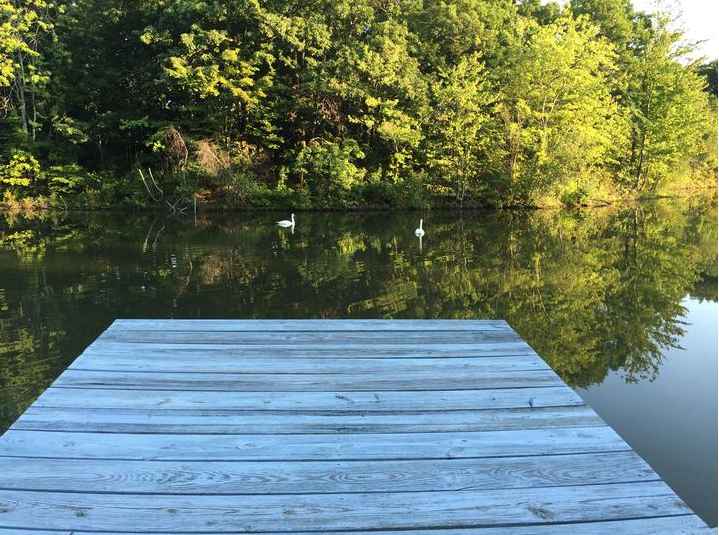 本来可以叫它木桥,它具有木桥的形态,但是它没能到达彼岸,在湖里伸出一段便成了断桥,因此只能称它为木台,名字显得平庸了些,但还算准确。木台下的木桩栓了一只小船,可以随时登船划向湖里。我想前房东在屋后的湖边建一个木台,最大的作用可能是钓鱼,或者搬一张躺椅在木台上晒太阳。我四周望去,环湖的20多户人家,几乎每家屋后都建有这样一个木台。我对钓鱼兴趣不大,但我喜欢走到木台的尽头,向左右两个方向望着长长的希思湖,这时候,湖水涟漪,让人有一种在行船上的感觉。我更多的是透过窗户,远远望着木台,木台就像是我心灵的渡口,从这里,我可以飘洒我脑海无穷无尽的思绪,通过这个心灵的渡口,放飞到绿水蓝空里,放飞到我期望到达的梦境中。