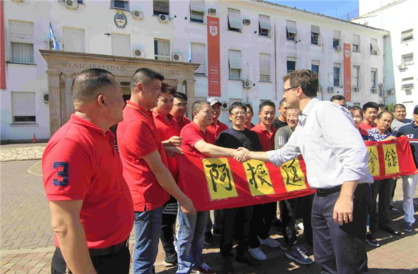 阿根廷布宜诺省莫龙市长鲁卡斯‧吉(中)