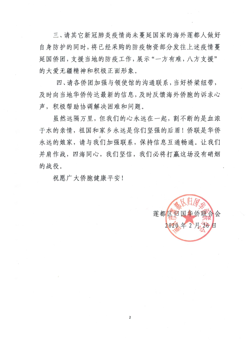 丽水莲都区侨联致海外莲都侨胞的一封信