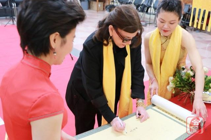 法国华侨华人会主席任俐敏应邀恭读了拜祖文。钢琴家周勤玲、歌唱家毕征庆、社会活动家谢可纬等法国华人华侨代表先后来到会场参拜黄帝,在祈福树上悬挂祈福牌,在拜祖书法长卷上签下自己的姓名和祝福。