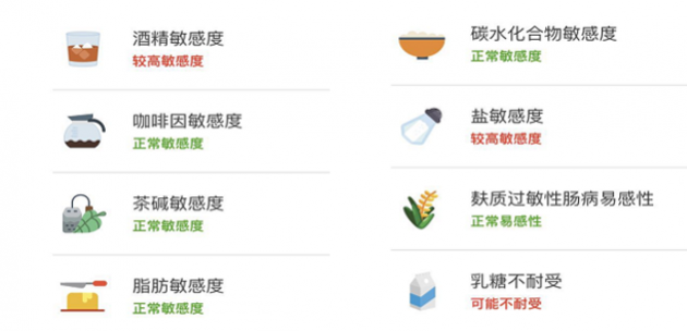 圆基因检测可以告知用户被检测者的【膳食敏感】、【营养需求】、【疾病风险】,甚至为【运动健康】提供合理性建议。