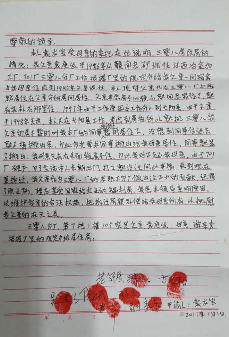 时过境迁,2016年,根据德兴市城市改造需要,三零八分厂生活区被列入棚屋改造范围,并且德兴市此前出台规定,补偿倾斜现住居民。这使得房屋原居住者的袁庚发鸡飞蛋打。而袁庚发的儿子袁龙宝多次找到负责棚改补偿的社区领导反映,请求协调。
