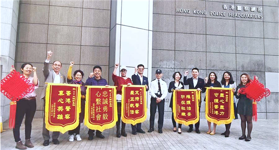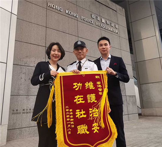 香港金融侠侣赠锦旗:致香港警察———維護治安 功在社職