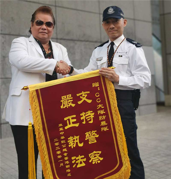 东盟中华致公总会香港联络处赠锦旗:cc大队防暴队———支持警察 严正执法